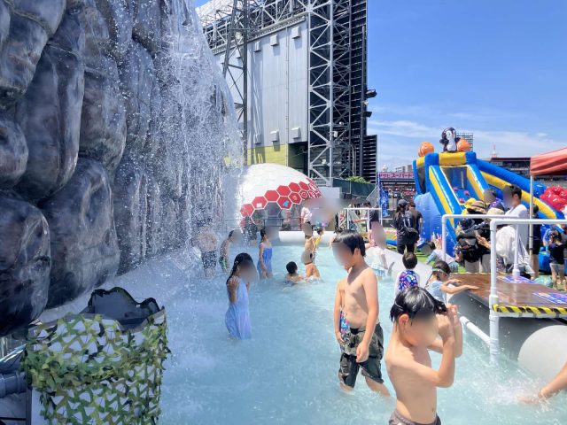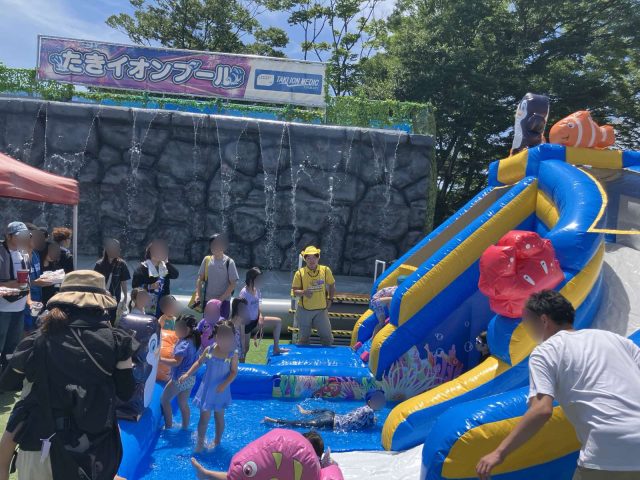 今年はプール前にウォータースライダーを配置。猛暑の中“涼”を提供させていただきました。