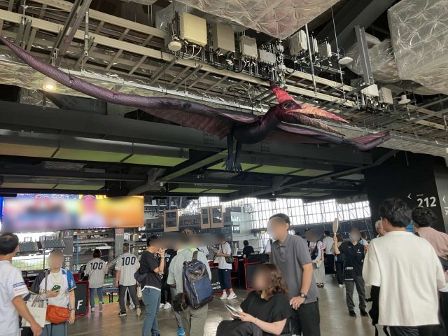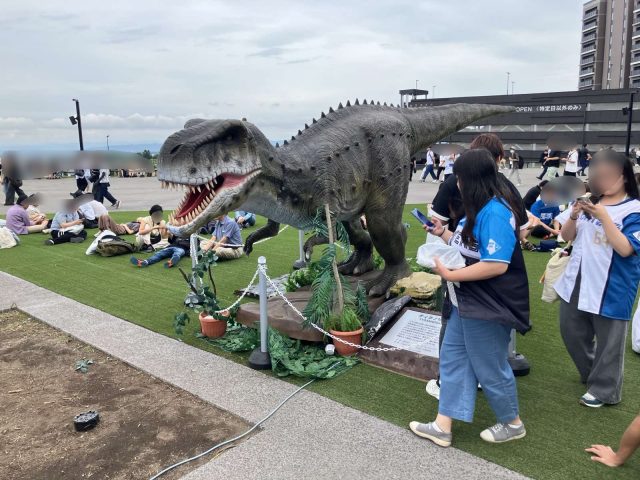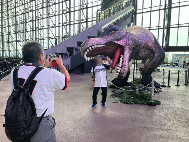 スタジアムの屋内外へ恐竜ロボットやリアル巨大バルーンを各所へ展示、球団主催のデジタルスタンプラリーで各ポイントをめぐる企画を開催されました。