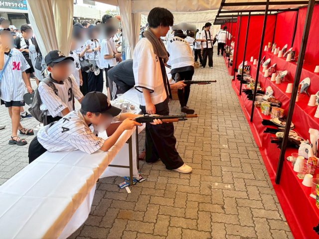 多数の来客を想定し、一度に複数のお客様がプレイ可能な「スーパーロング射的」をさらに会場を今年はさらに伸ばし、21.6mに増長するなど