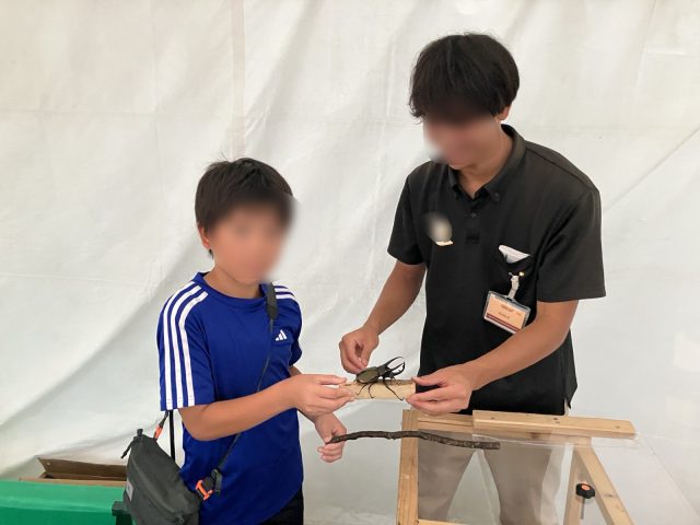 昆虫展では12種類の世界の生きた昆虫を展示し、ケースから出してさわれるサービスを行いました。
