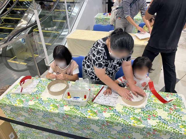 同時開催として、お子様向けにエイサー太鼓作りワークショップを同時開催し、館全体のイベント演出も行いました。