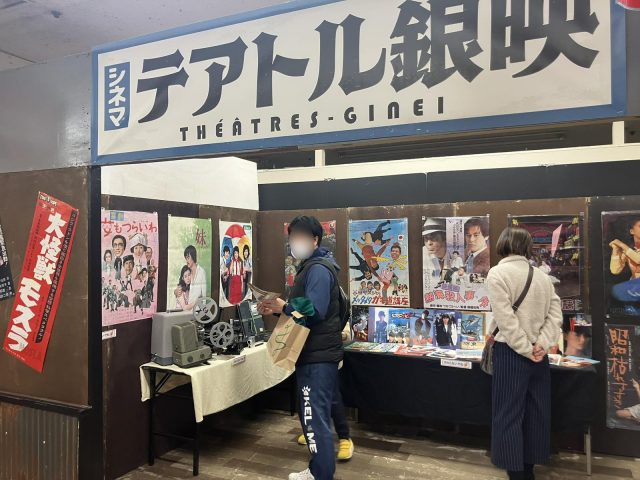 今回から登場の映画館展示ブース。昭和40年~60年代の映画ポスターと撮影機などを展示しています。
